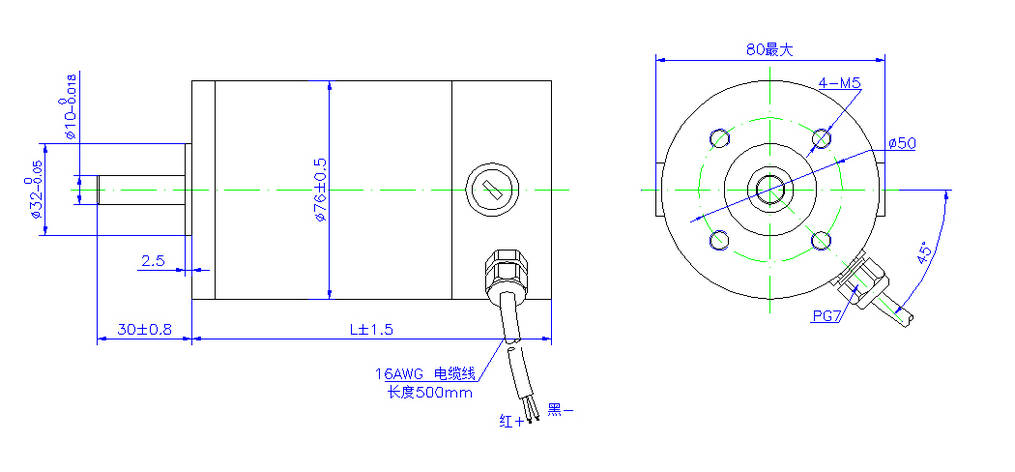 * 76mm機(jī)殼直徑,廣泛適用于各種泵、清潔機(jī)械等